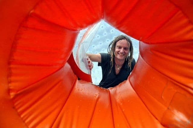 There are a variety of options for ones Zorb experience, and the one we were doing was known as the Zydro Zorb. This is a wildly cunning play on the terms Hydro and Zorb, and, you’ve guessed it, involves adding water to the mix. So yes, you clamber into the Zorb through the little Zorb tunnel, and sit in a fairly large puddle of (thankfully heated) water. It’s a bit like I imagine swimming pools in outer space might be.