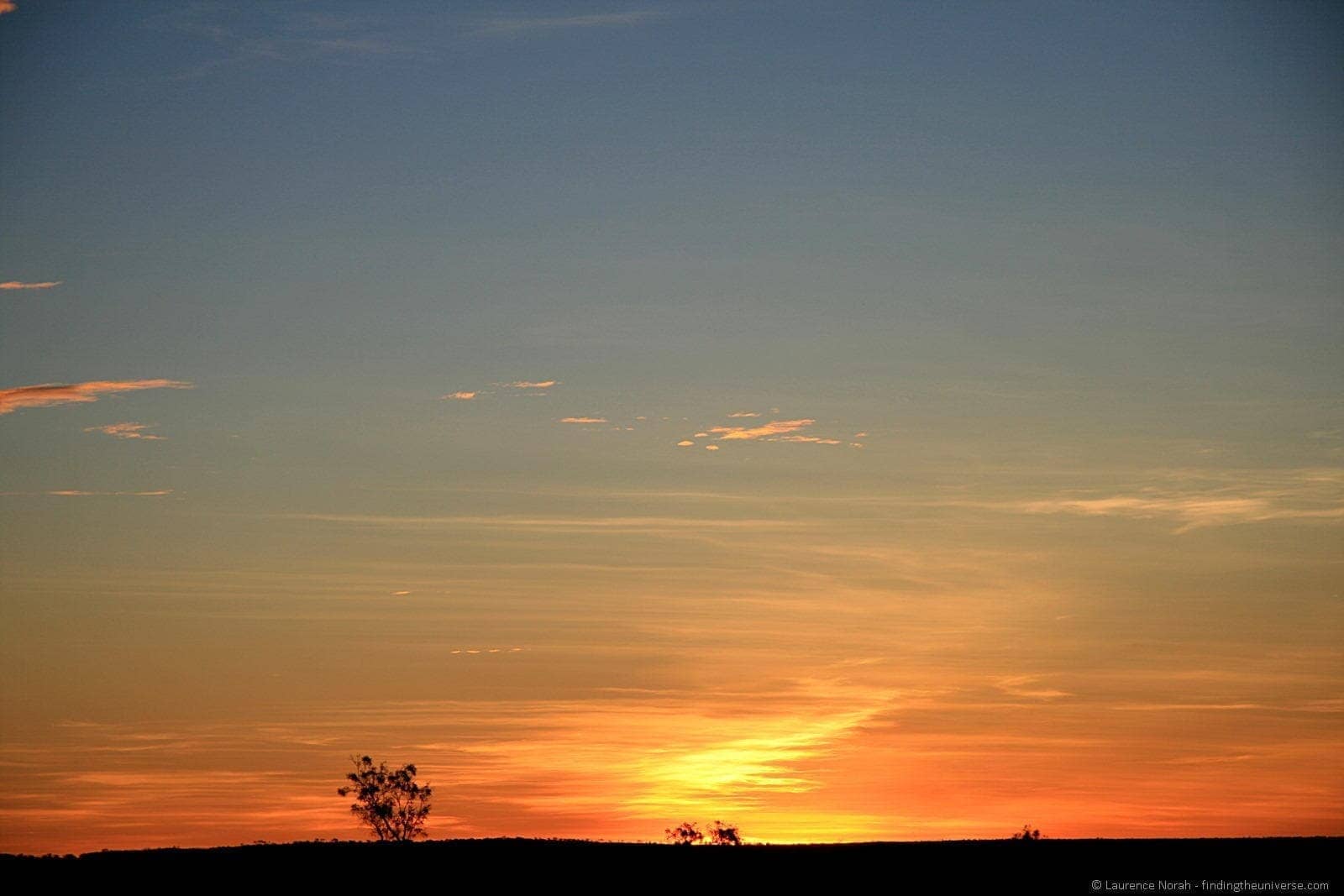 Outback sunset, Australia. This was taken at the maximum zoom of this lens with the aperture as wide open as it would go for that zoom length, which was a not very wide f5.6. A telephoto lens will usually have different maximum aperture ratings for different focal lengths.