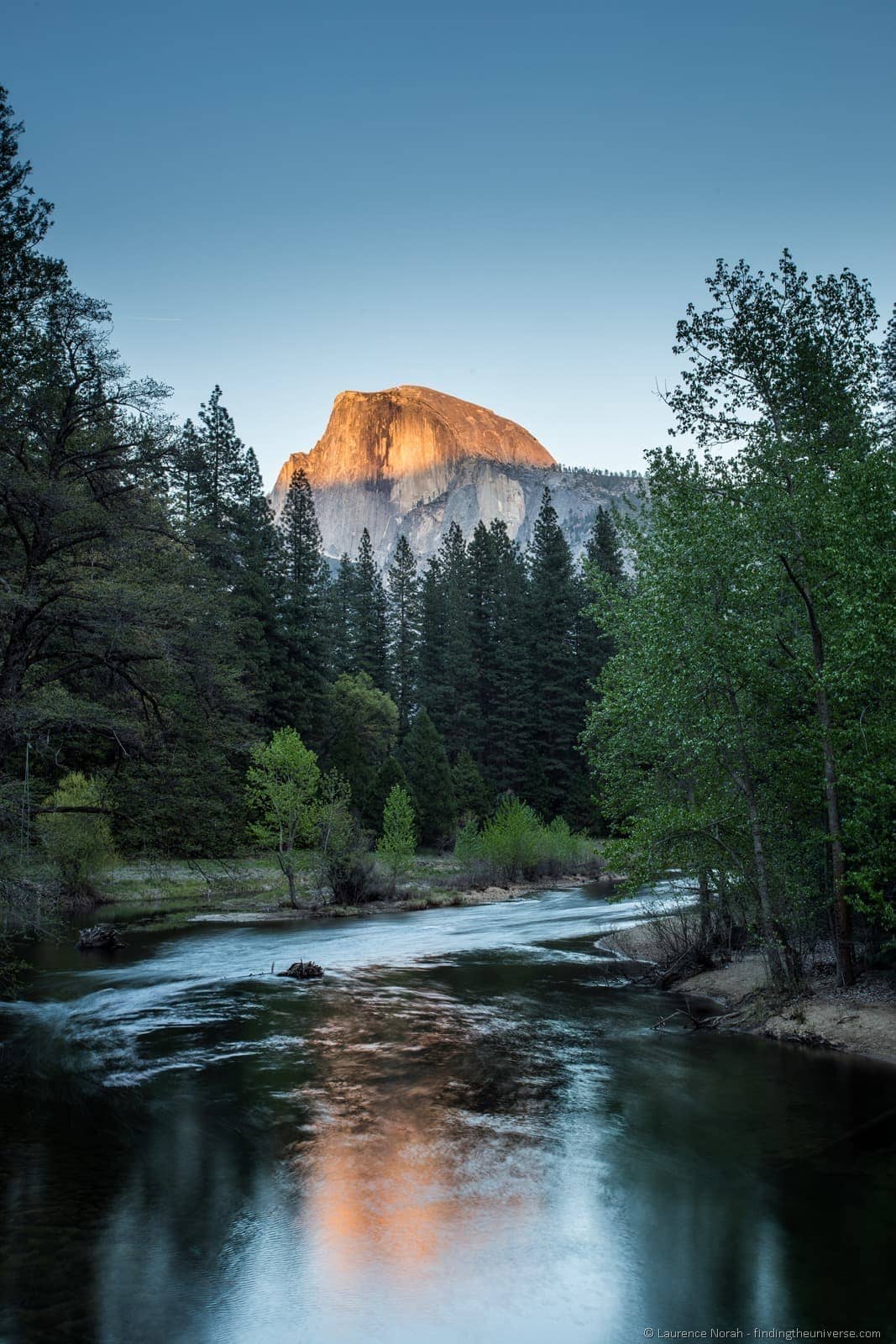 For sunset views of Half Dome, one of my favourite locations had to be Sentinel Bridge. From here you can see the last of the light illuminating this magnificent rock formation, with the added bonus that there’s a river for reflections.